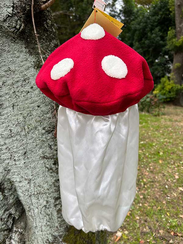 4400円という気持ち強気のお値段にしているので売れるか謎ですが、白い水玉模様の部分も丁寧に手縫いですし、いちいち丁寧にこだわって作ったつもりです…!首のとこきゅっとしめるパーツもきのこっぽくて可愛いのをつけましたよ。