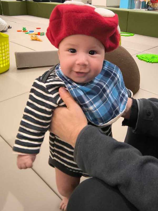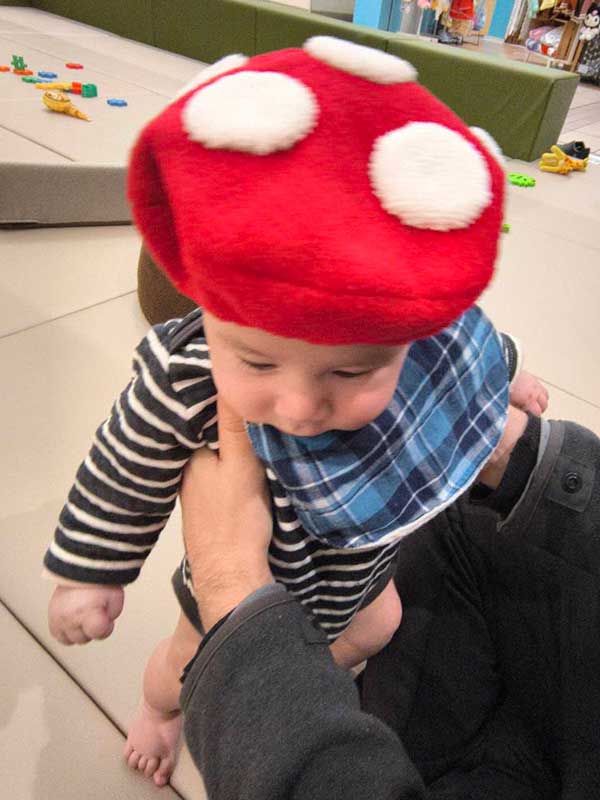 そして。お友達の赤ちゃんが可愛すぎるので、きのこ帽子を被せたくなって勢いで作ってしまったのがこれ